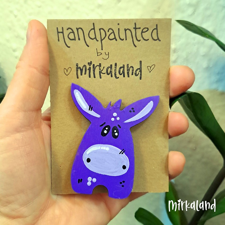 Kézzel festett falemez, akrilfesték, lakk, fém kitűző alap