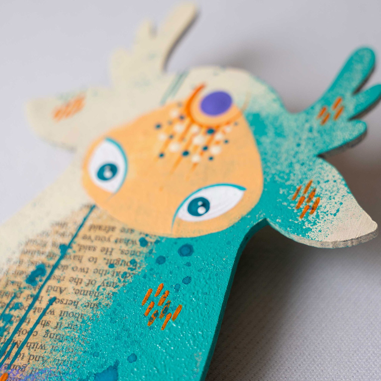 Kézzel festett, egyedi Mirkalurka dekor figura lézervágott falemezből – karakteres designnal, finom részletekkel és játékos misztikummal, azoknak, akik az egyedi tárgyakat keresik, nem a tömegterméket.
